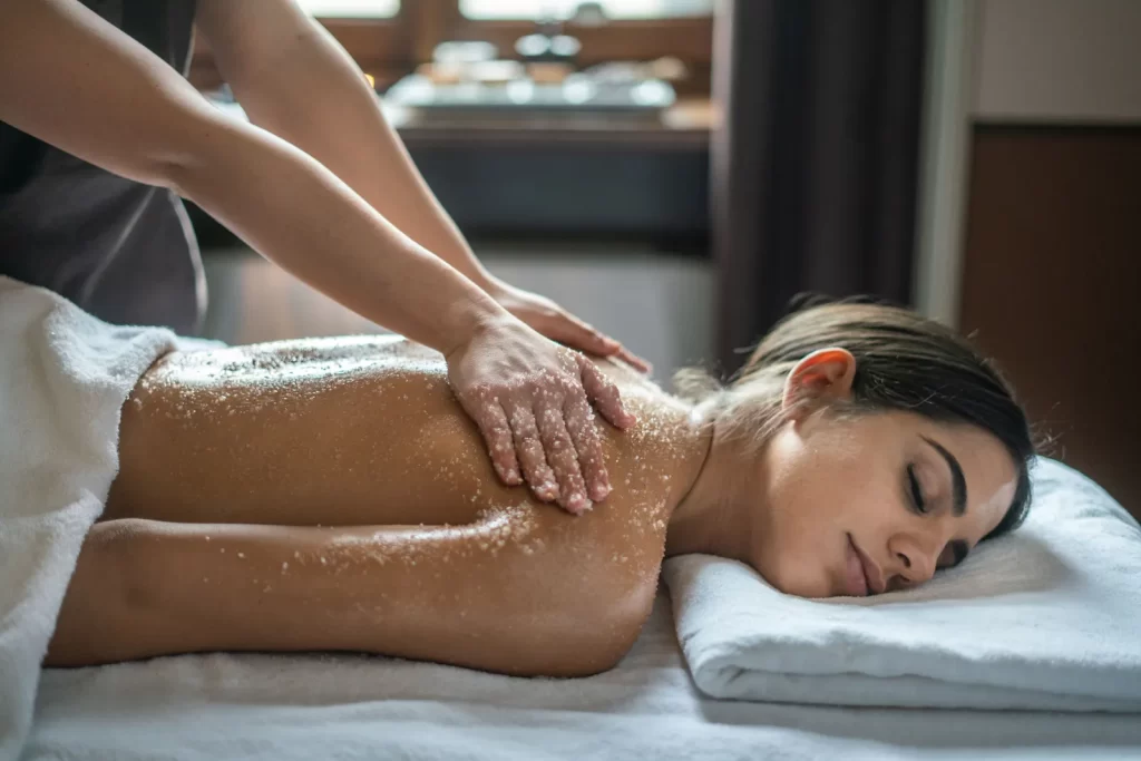 Con l’aiuto di sali, oli essenziali e miele, si effettua uno Scrub profondo per rimuovere le cellule morte dalla cute attraverso un trattamento esfoliante, lavorare sulla presenza di cellulite e adipe in eccesso, nonché drenare liquidi e scorie, per una pelle tutta nuova.